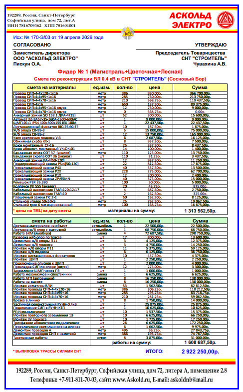🔥Доводим до вашего сведения, что благодаря слаженной работе членов Правления нашего СНТ с Администрацией города и Комитетом по агропромышленному и рыбохозяйственному комплексу Ленинградской области, нам удалось реализовать первую часть реконструкции электросетей СНТ стоимостью 5 096 222 руб. После окончания работ первого этапа и подготовки большого количества необходимых документов для получения субсидии, нам одобрили и уже перечислили субсидию на продолжение реконструкции электросетей в размере 4 331 788 руб., что составляет 85% от потраченной нами суммы на реконструкцию. Это отличный показатель!